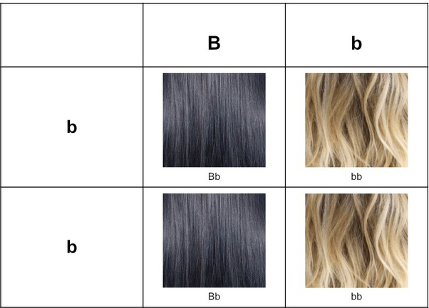 A baby born from a blondebrunette pair where the brunette carries the recessive blonde trait has a 5050 chance between the two colors.